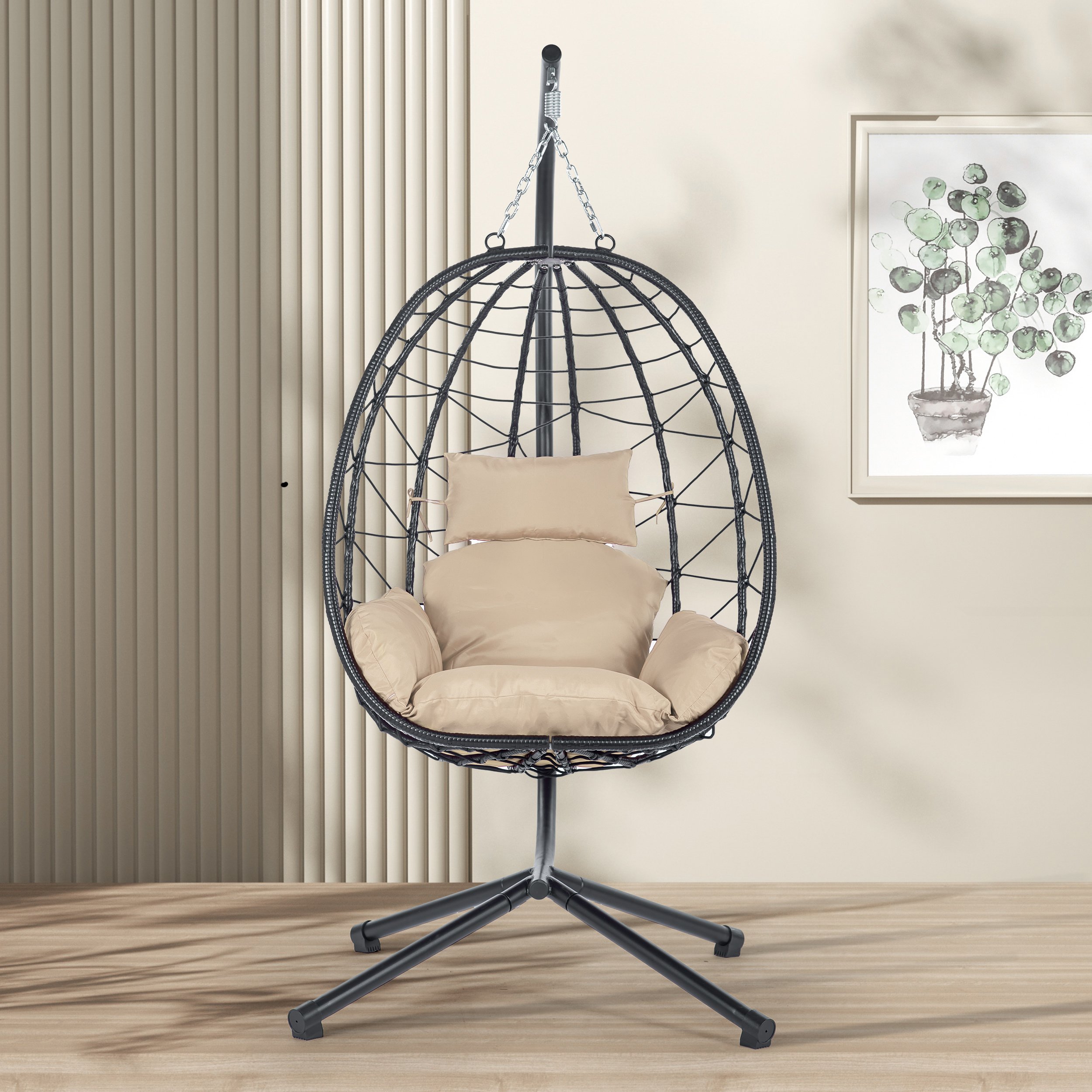 Egg Chair with Stand Indoor Outdoor Swing Chair Patio Wicker Hanging Egg Chair Hanging Basket Chair Hammock Chair with Stand for Bedroom Living Room B