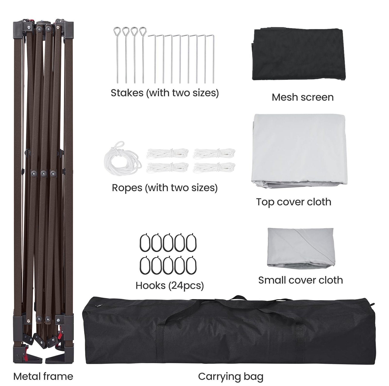 [Sturdy&Durable Frame] For increased stability and weather resistance,The Frame is made of rust-resistant powder-coated steel.In addition, the product is equipped with windbreak ropes and nails,which will provide additional stability support.