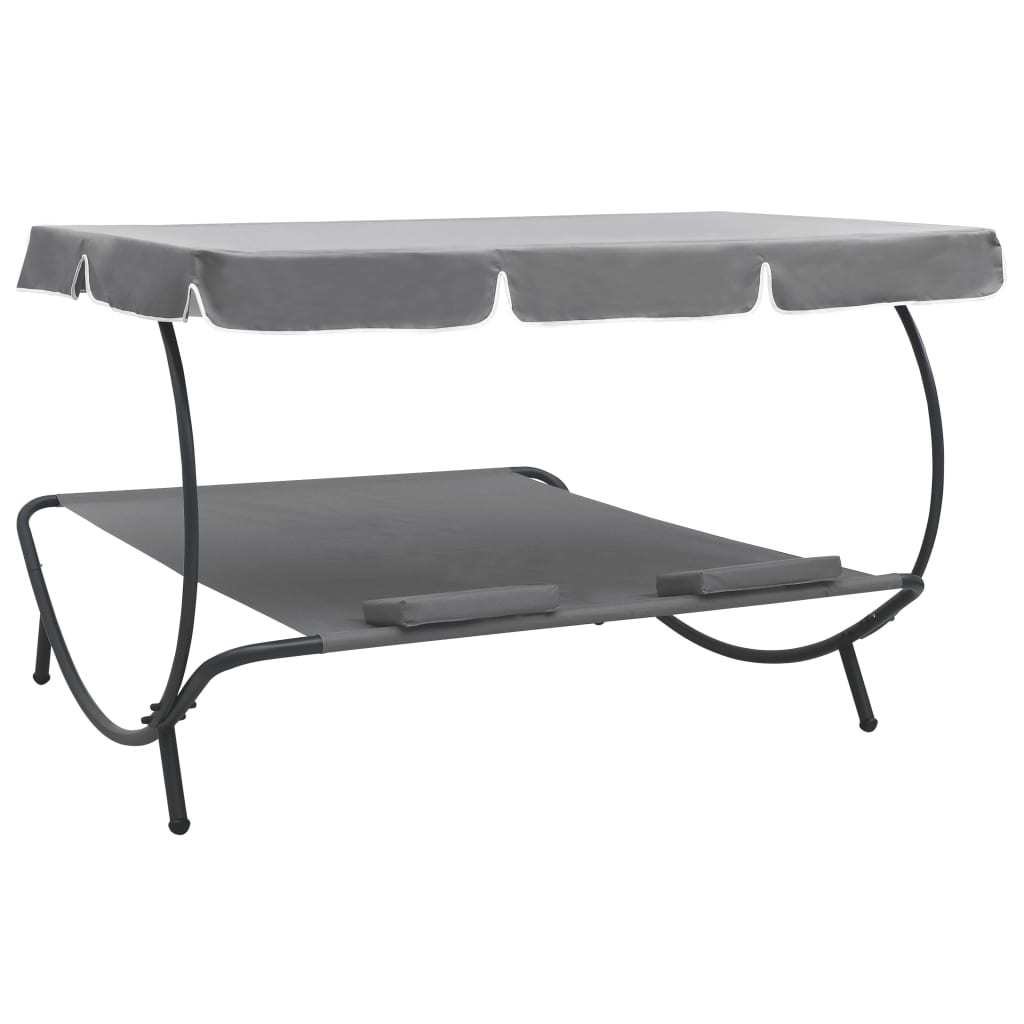 Home > Patio Lounge Bed with Canopy and Pillows Gray